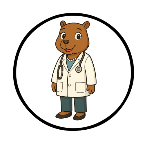 Dr. Cap is so wise, with a smile warm and bright, She explains things with pictures to make them feel right. She helps Tuffy feel brave when the day feels too long, With kindness and care, She makes her feel strong.